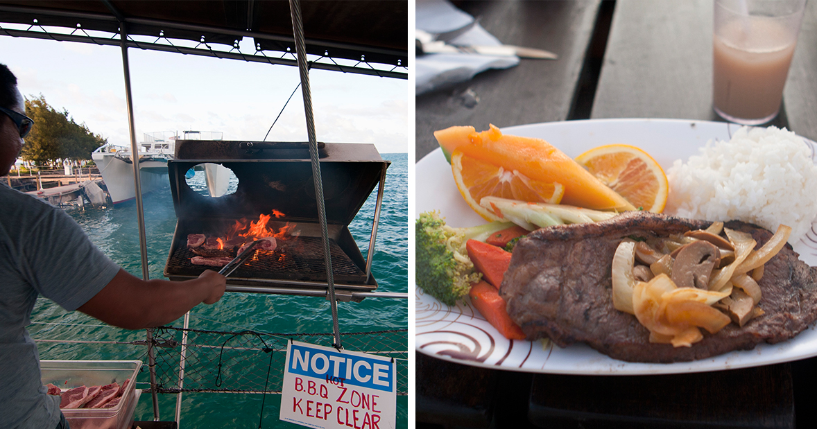 식사 중 사이판의 명물중 하나인 제리 아저씨가 아름다운 노래를 들려주며,