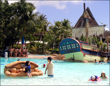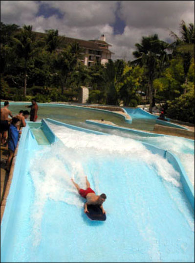 워터파크 | 워터슬라이드,수영장(수중배구,수중농구등 수중게임) 암벽등반, 인공파도타기(포인트브레이크) |